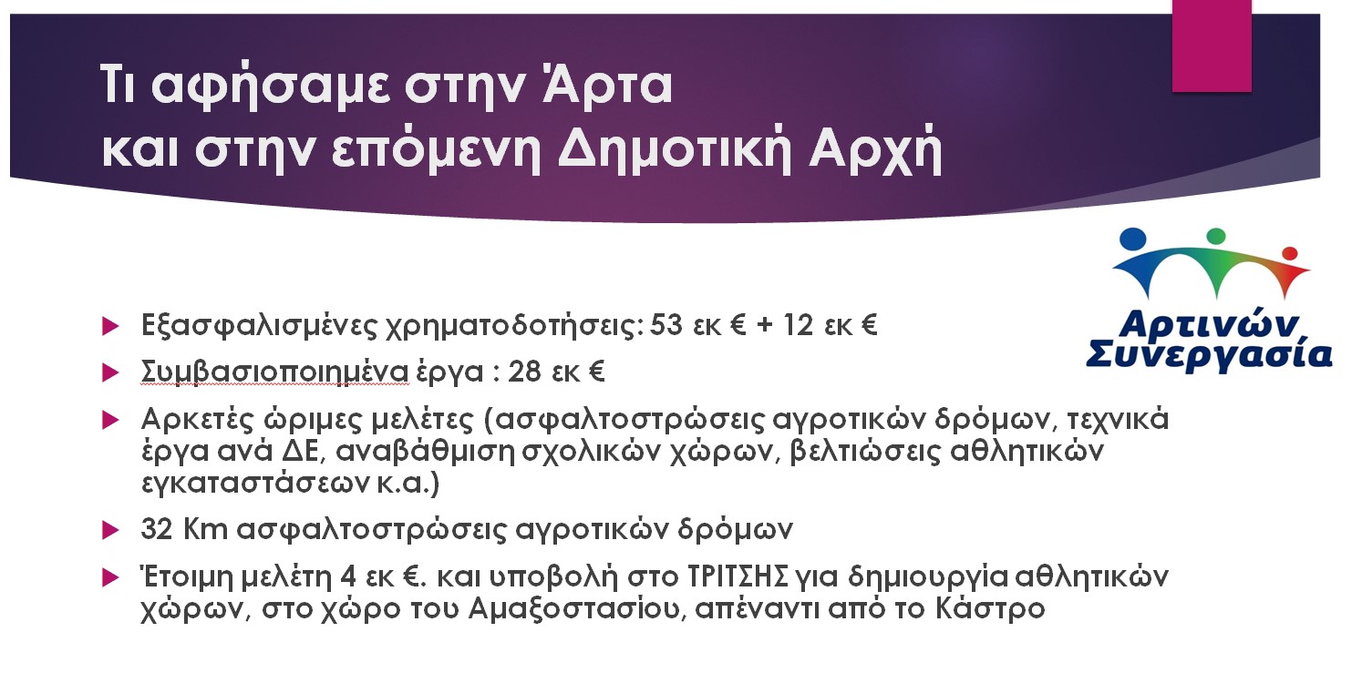 Συνολικά αφήσαμε στην Άρτα και στην επόμενη Δημοτική Αρχή:
