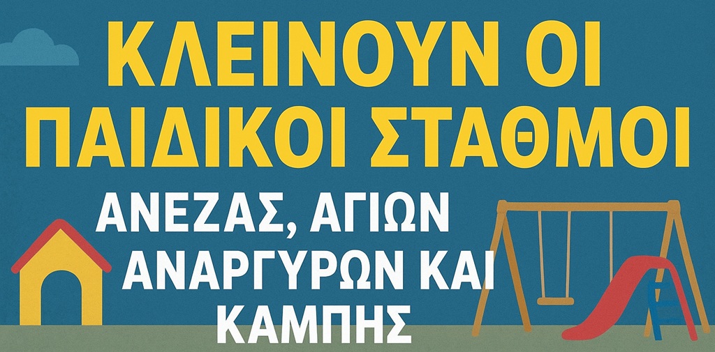Με εισήγηση του Αντιδημάρχου Παιδείας Χρ. Γιώτη κλείνουν οι παιδικοί σταθμοί Ανέζας, Αγίων Αναργύρων και Καμπής.